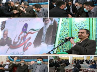 استاندار چهارمحال و بختياري در ادامه با بيان اينکه پيروزي انقلاب اسلامي يک حرکت مردمي و خدامحور بود، عنوان کرد: اين انقلاب با فداکاري و استقامت مردم در برابر مشکلات هم‌چنان توفنده به پيش مي‌رود و سر تسليم در برابر دشمنان فرود نمي‌آورد، در طول بيش از چهار دهه گذشته دشمنان جمهوري اسلامي عليه اين انقلاب توطئه‌هاي فراواني را پياده کردند، اما مردم با حضور در صحنه در مقابل دشمنان ايستادگي کردند و تک تک توطئه‌ها را خنثي کردند.
