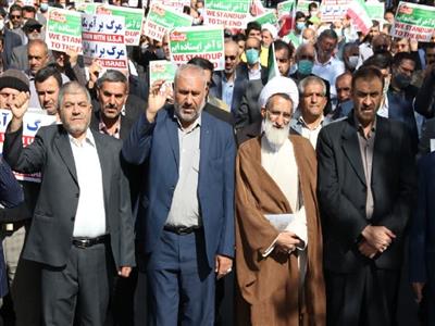 به گزارش روابطعمومي استانداري چهارمحال و بختياري، مردم استان پس از اقامه نماز جمعه، با سردادن شعارهايي همچون «جانم فداي رهبر»، «مرگ بر منافق»، «تا زندهايم رزمندهايم»، هتک حرمت حرم شاهچراغ (ع) را محکوم کردند.