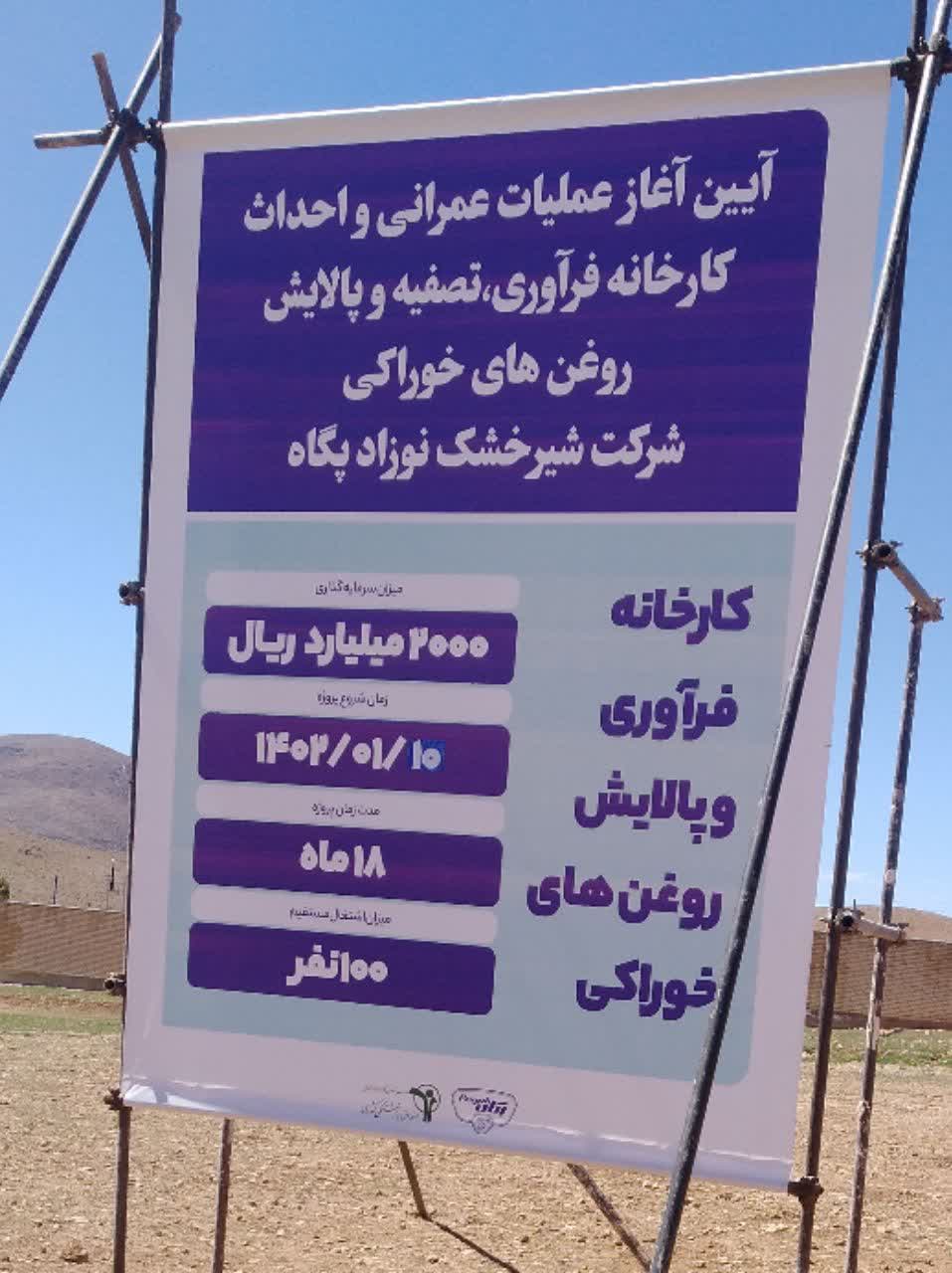 وي خاطرنشان کرد: عمليات اجرايي احداث کارخانه فرآوري، تصفيه و پالايش روغن‌هاي خوراکي با کلنگ زني مديرعامل صندوق بازنشستگي کشوري و استاندار استان شروع شده است.