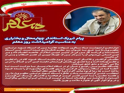 استاندار چهارمحال و بختياري روز معلم را تبريک گفت