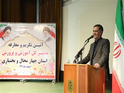 آئين تکريم و معارفه مديرکل آموزش و پرورش استان روز سه شنبه با حضور استاندار چهارمحال و بختياري ، نماينده مردم شريف شهرستان هاي شهرکرد،بن و سامان در مجلس شوراي اسلامي و معاون پشتيباني و توسعه مديريت وزارت آموزش و پرورش برگزار شد.